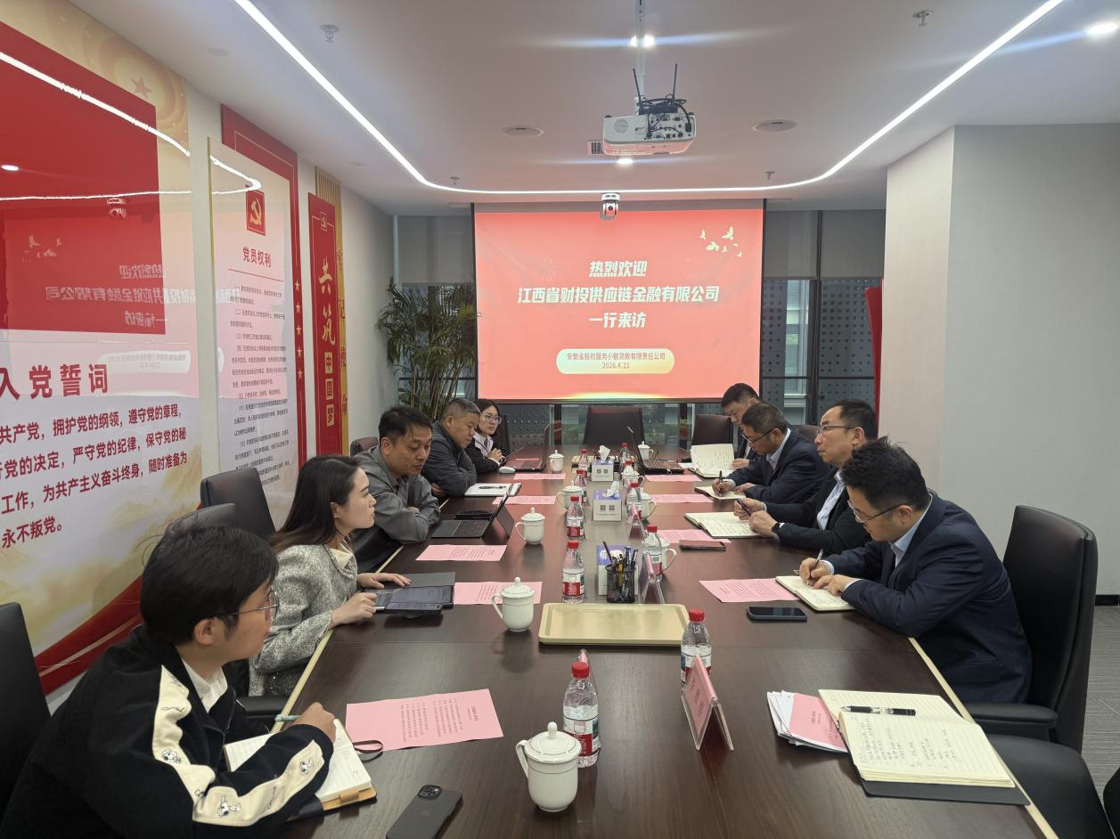 近日,江西省财投供应链金融有限公司(以下简称"江西财投供应链")董事、总经理曾刚一行到访省股权服务公司,围绕小额贷款、商业保理等重点业务开展座谈交流。省股权服务公司党委委员、副总经理毛一辉,省股权小贷公司总经理尤帅,省股权保理公司及相关业务部门负责人参加座谈。