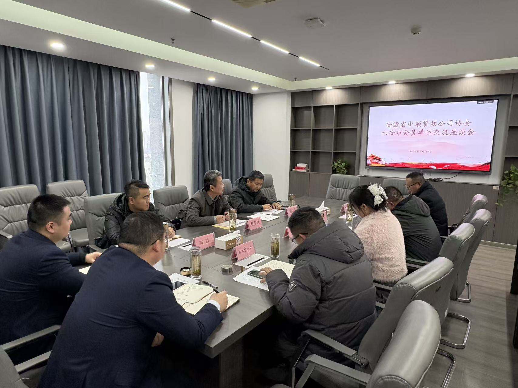 2026年2月9日,安徽省小额贷款公司协会秘书长张华斌一行赴六安市走访调研,并在市小贷公司召开会员单位交流座谈会。市财政局金融监管科相关负责同志,以及市小贷公司、创新小贷、惠商小贷等会员单位负责人及业务代表参加会议。