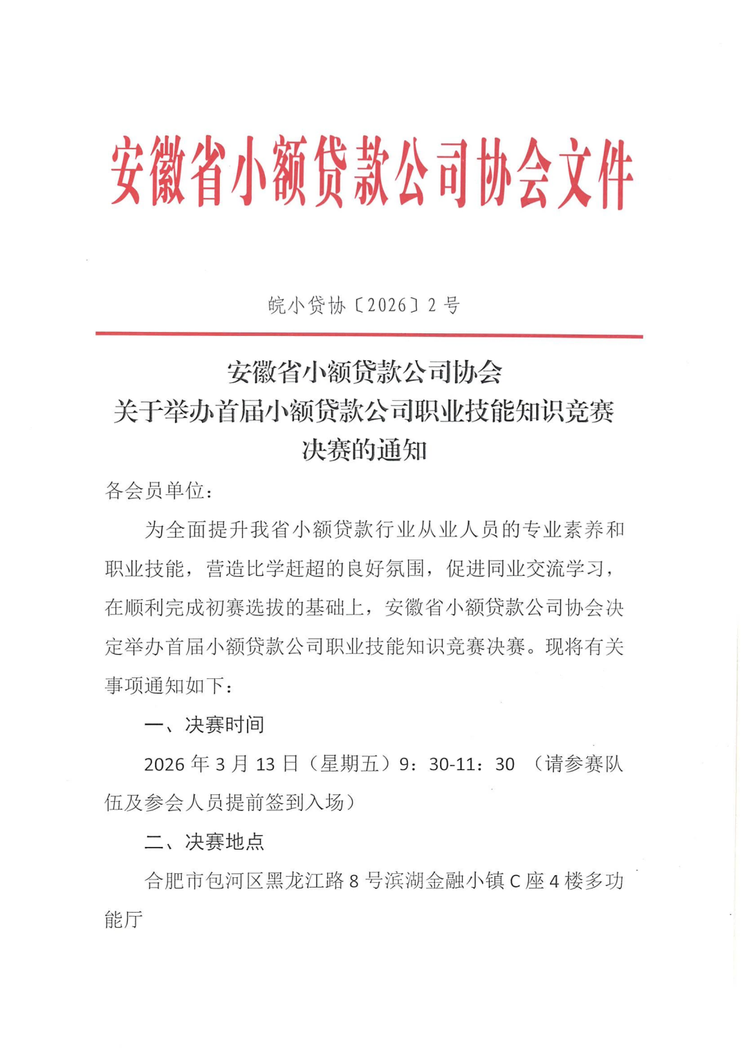 关于举办首届小额贷款公司职业技能知识竞赛决赛的通知