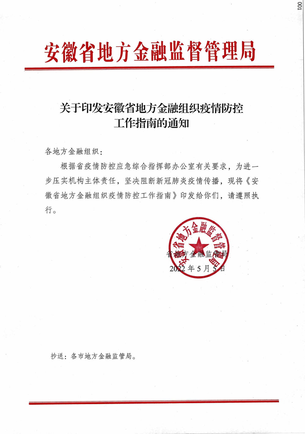 省地方金融监管局 | 关于印发安徽省地方金融组织疫情防控工作指南的通知