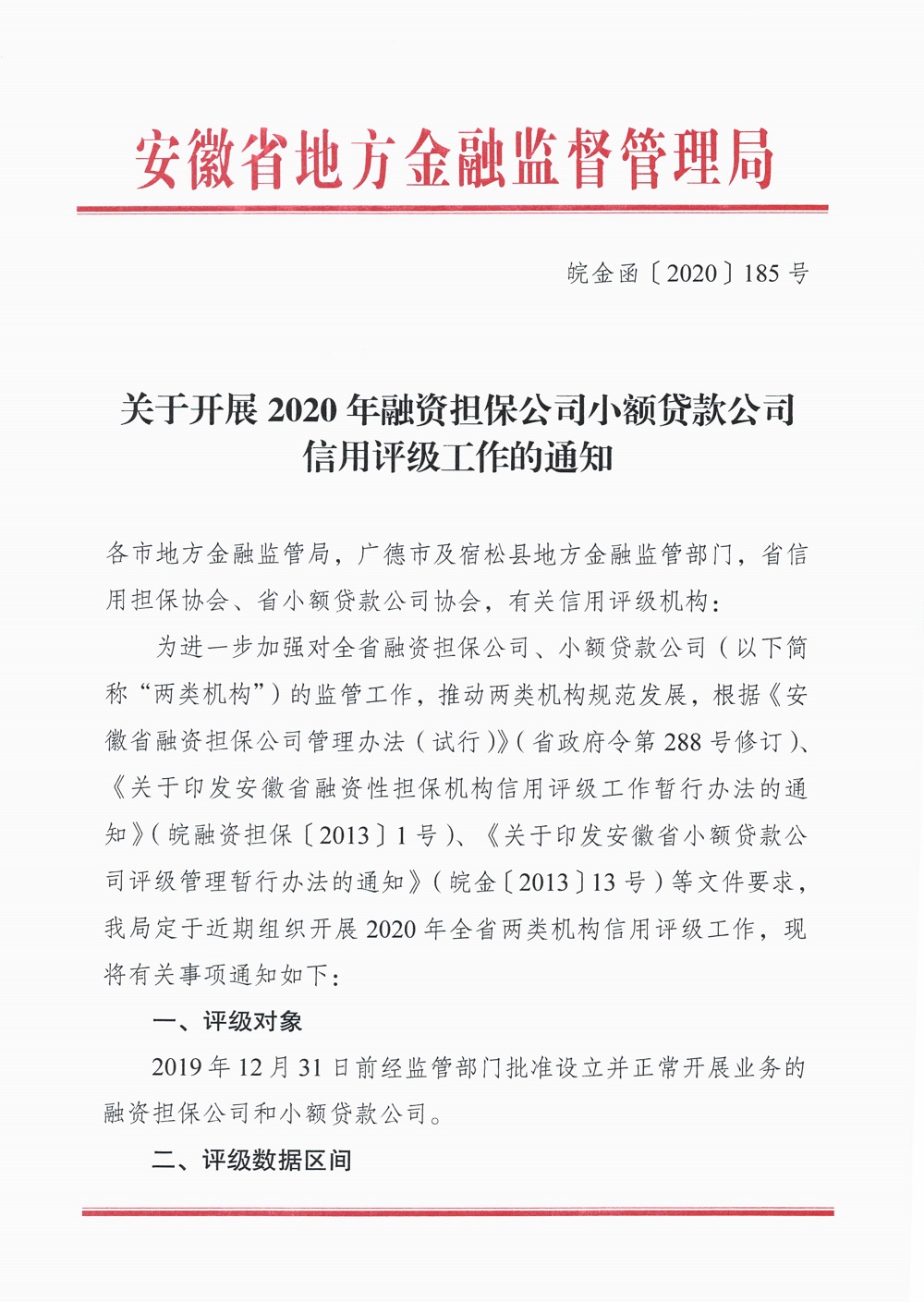 关于开展2020年融资担保公司小额贷款公司信用评级工作的通知